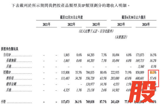根据公司招股书披露,2024年上半年,公司约81.3%的收入来自于授权IP,主要是奥特曼和变形金刚,分别占同期收入的57.4%和18.7%。